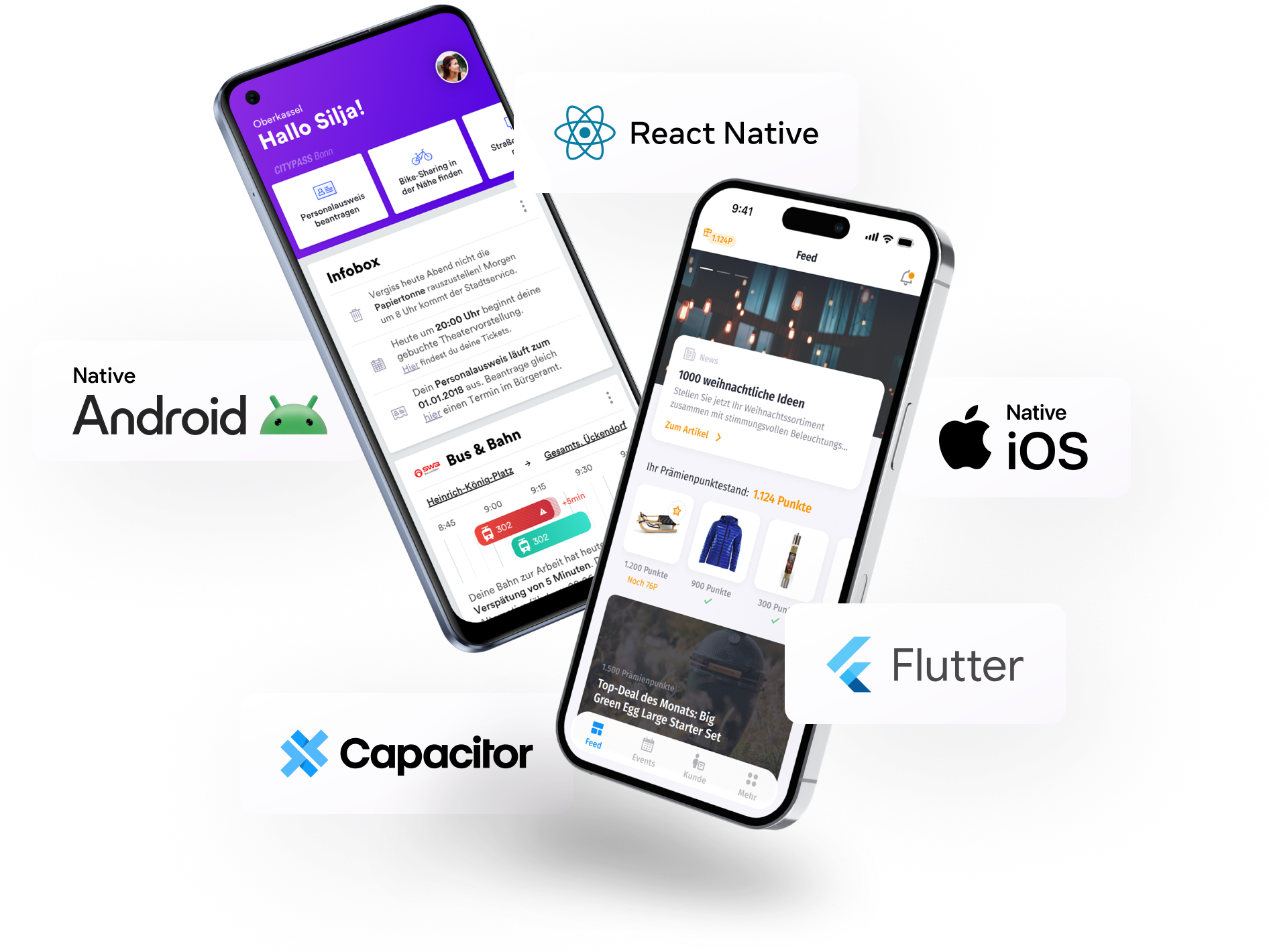 Cross-platform apps based on Flutter, React Native or Capacitor simplify development using a single codebase.
