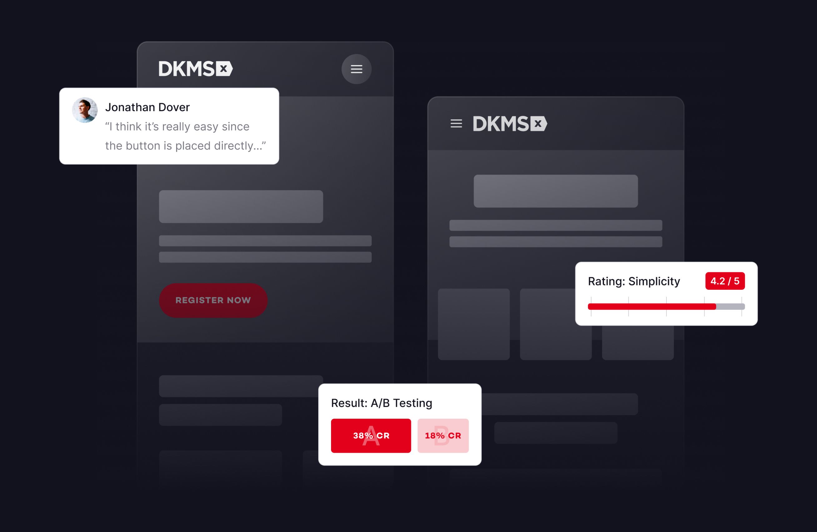 As the digital lead agency for DKMS – a non-profit organization giving hope for blood cancer patients all around the globe – we were asked to realize their international website relaunch. We crafted a solution that attracts, educates and retains stem cell donors and handles more than 5,000,000 visitors and 100,000 registrations of new potential lifesavers per month.